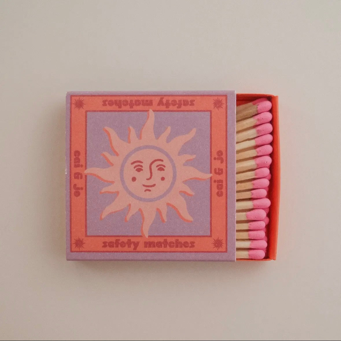 Añade un toque cálido y decorativo a tu hogar con las cerillas “Sol Vintage”, una cajita preciosa con diseño retro en tonos lila y coral.Perfectas para acompañar tus velas favoritas, decorar una mesita o regalar junto a un detalle especial.